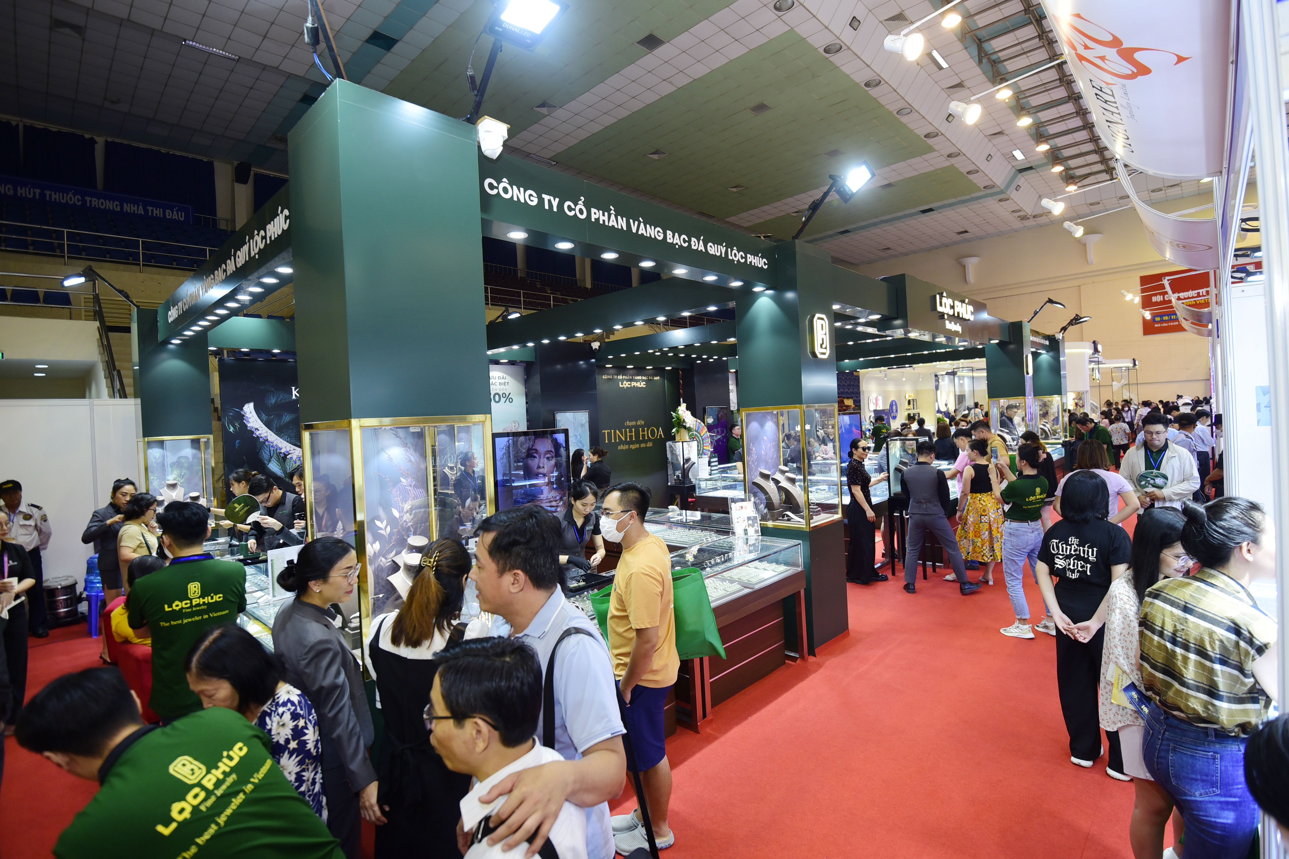 Hội chợ quy tụ nhiều thương hiệu nữ trang uy tín tại Việt Nam như SJC, Lộc Phúc, Huy Thanh.